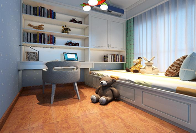 孩子小的時候通常不會有單獨的書房,家長會在兒童房一角給他們購置書柜、書桌,這樣簡易的方法在中國許多家庭都很常見,這樣是很方便,不過